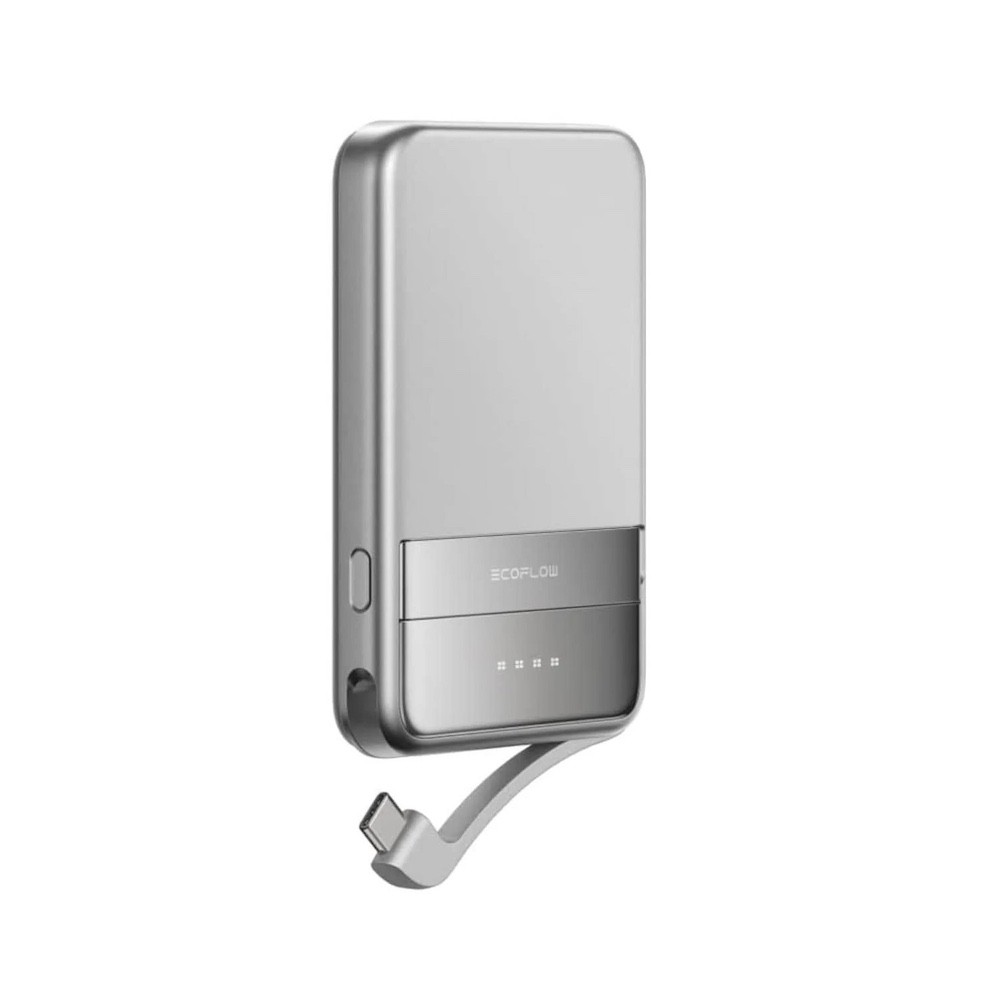 Преносима външна батерия вграден USB-C кабел, USB-C порт и безжично зареждане с MagSafe (сребрист)  - EcoFlow Rapid Magnetic Wireless Charging Power Bank 5000 mAh 30W