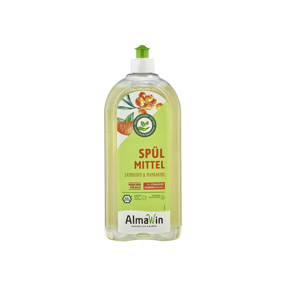 Съдовете ви ще засияят като слънце с аромата на мандарина!Открийте силата на природата с AlmaWin биоразградим препарат за съдове с аромат на мандарина от серията EcoLine! Всяка капка от този течен препарат осигурява безупречна чистота и свежест, докато се грижите за околната среда и здравето на вашето семейство. Формулата му е щадяща към кожата, но безкомпромисна към замърсяванията, което прави миенето на съдове истинско удоволствие. Ароматът на мандарина ще вдъхне свежест във вашата кухня и ще превърне всяко измиване в малък ритуал на грижа към себе си и природата. Изберете 1 л биоразградим течен препарат за съдове AlmaWin и се радвайте на чистота с отговорност към бъдещето. Защото чистотата е вдъхновение и грижа – за вас, за семейството ви и за планетата!