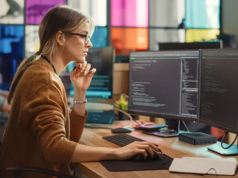 PSMPC100 is perfect for routine office tasks such as document processing, working on spreadsheets, presentations, and web browsing. It is powerful enough to handle multitasking on several displays for improved concentration and boosted productivity. Its compact size allows for a clean, clutter-free workspace and more room for accessories and paper documents. The variety of PSMPC100’s fast connectivity options, including WiFi 6 and Gigabit Ethernet port, guarantees a hassle-free, stable connection for accessing remote assets and participating in online meetings. The modern CPU and storage upgradability option ensures future-proof use with next-generation operating systems and applications.