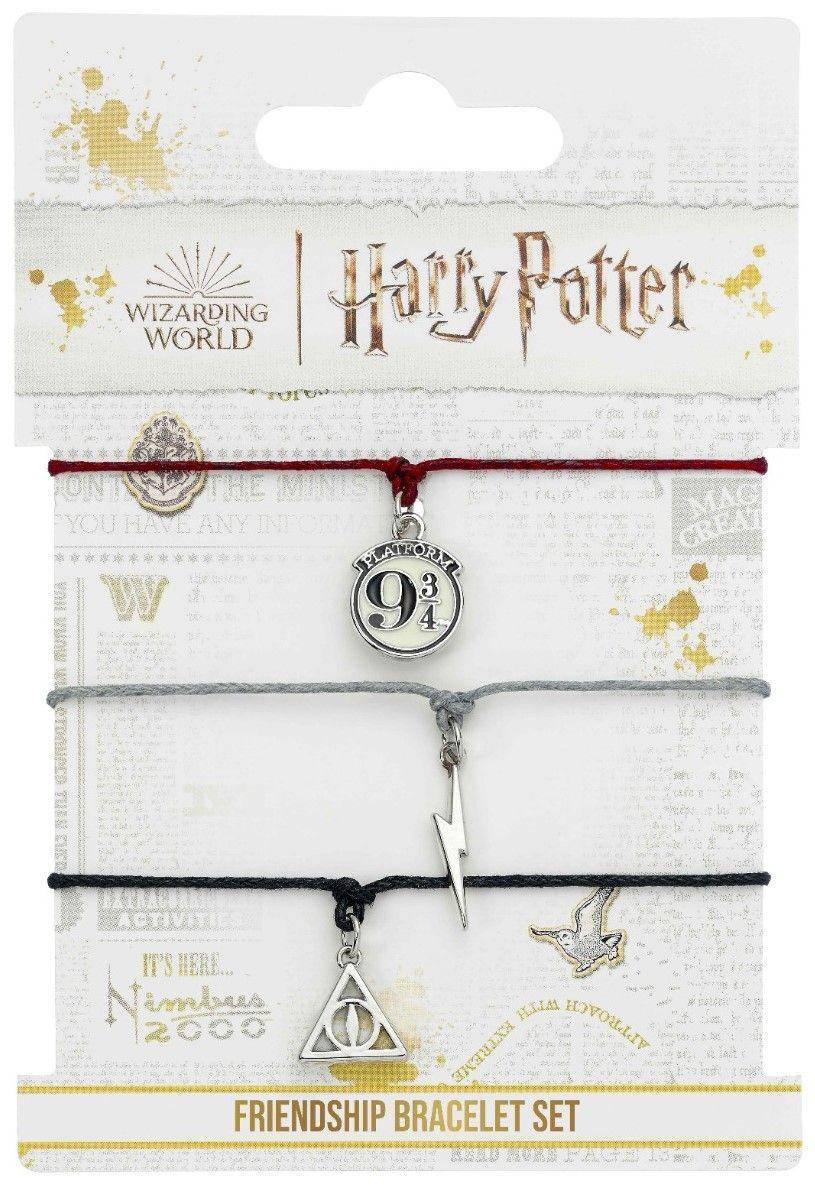 Комплектът приятелски гривни Harry Potter включва три тематични гривни – Platform 9 3/4, Lightning Deathly Hallows. Изработени от сплав от цинк и найлонова корда, те са здрави и удобни за носене. Този комплект е чудесен подарък за фенове на магическата сага и за споделяне с приятели, които обичат Harry Potter.
