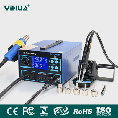 Станцията може да се използва за запоявяне, но има и пистолет за горещ въздух