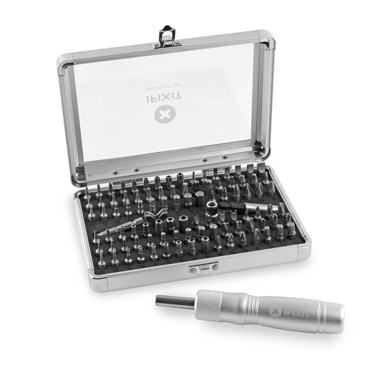 В комплекта ще намерите всички накрайници, които са ви необходими да разглбите почти всеки един смартфон на пазара: Torx, Phillips, Pozidriv, Clutch, Torq, Spline, Triwing, Square, Spanner, Hex, Flathead и Triangle накрайници! 97 висококачествени 1/4" накрайника изработени от CR-V стомана.