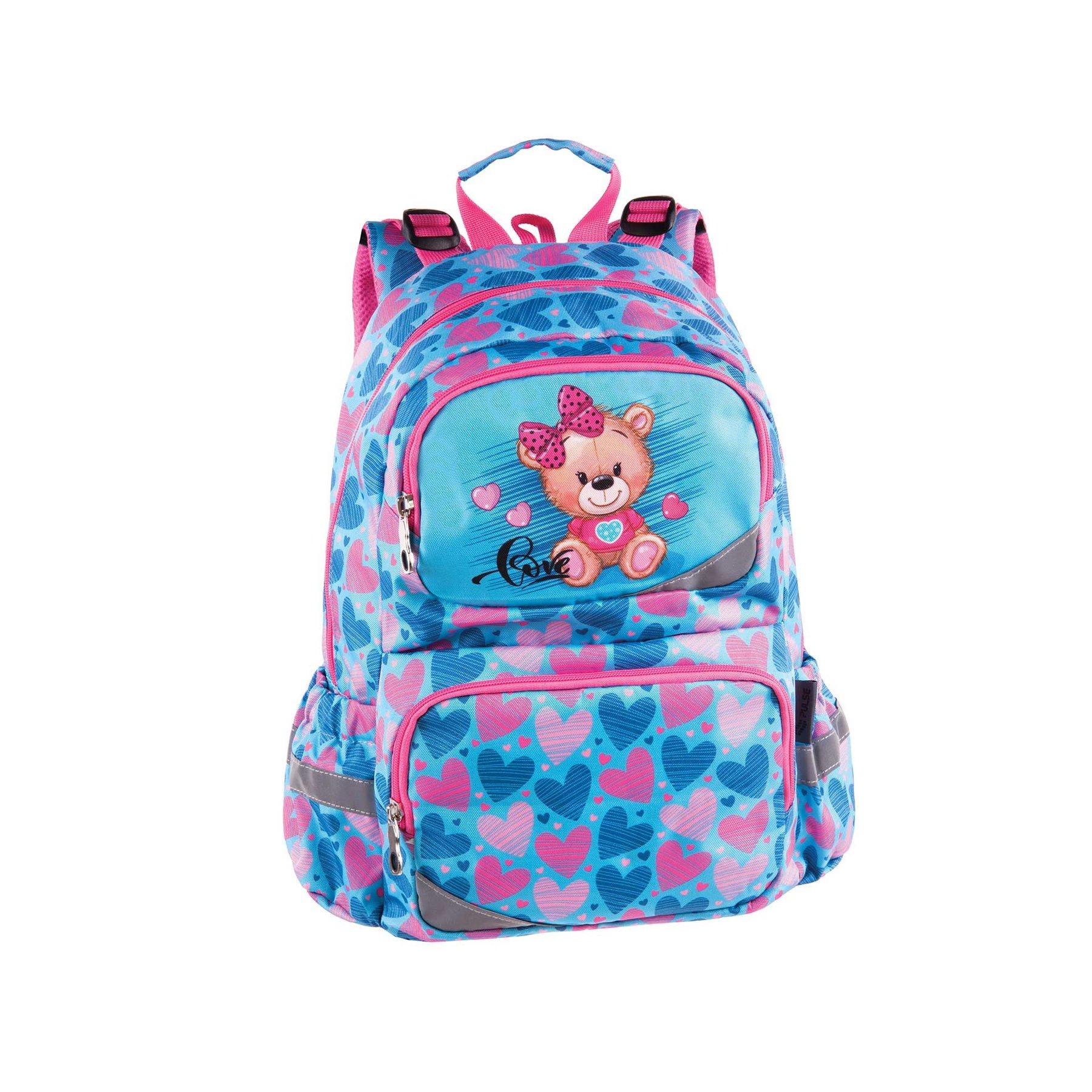 Раницата BACKPACK ANATOMIC TEDDY е с анатомична конструкция, подсилена в зоните, които по принцип са подложени на по-голямо натоварване. Покрита е със защитен слой против намокряне и има отразяващ светлината материал отпред и от двете страни. Раницата е с включен дъждобран. Цветът трудно избледнява и не се драска, което класифицира BACKPACK ANATOMIC TEDDY като раница с най-високо качество!