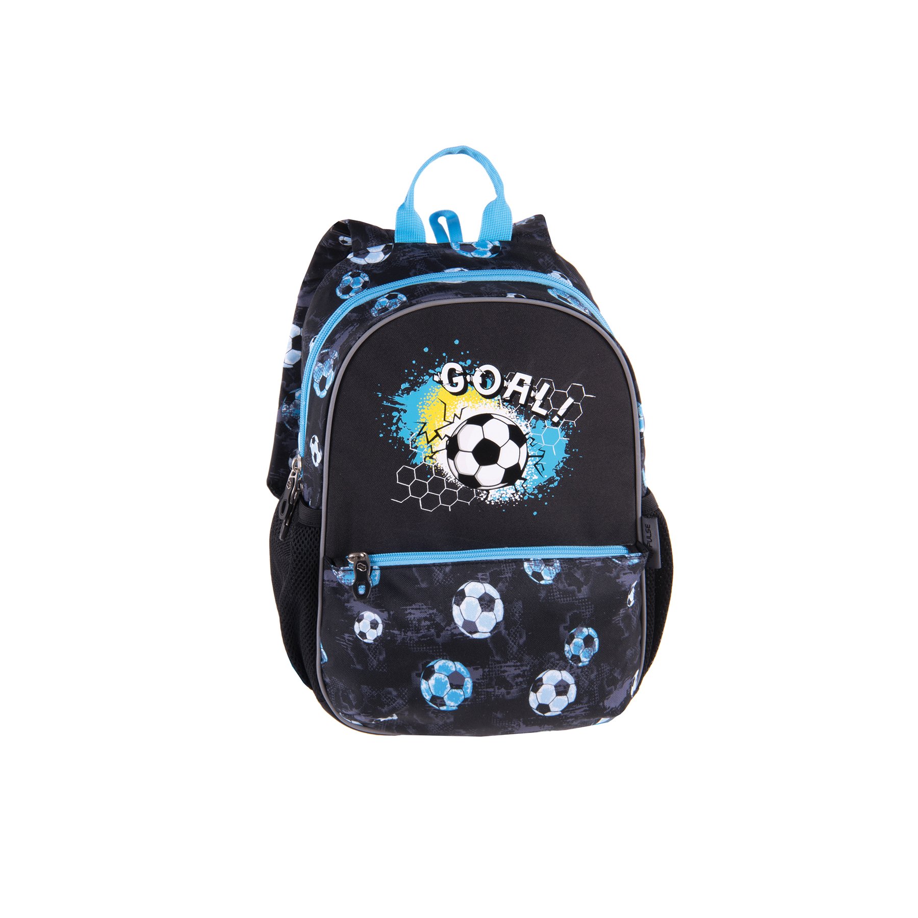Раницата PULSE JUNIOR BLACK GOAL е подходяща за деца в детска градина и предучилищна възраст. Покрита е със защитен слой против намокряне и има отразяващ светлината материал отпред. Цветът трудно избледнява и не се драска, което класифицира PULSE JUNIOR BLACK GOAL като раница с най-високо качество!