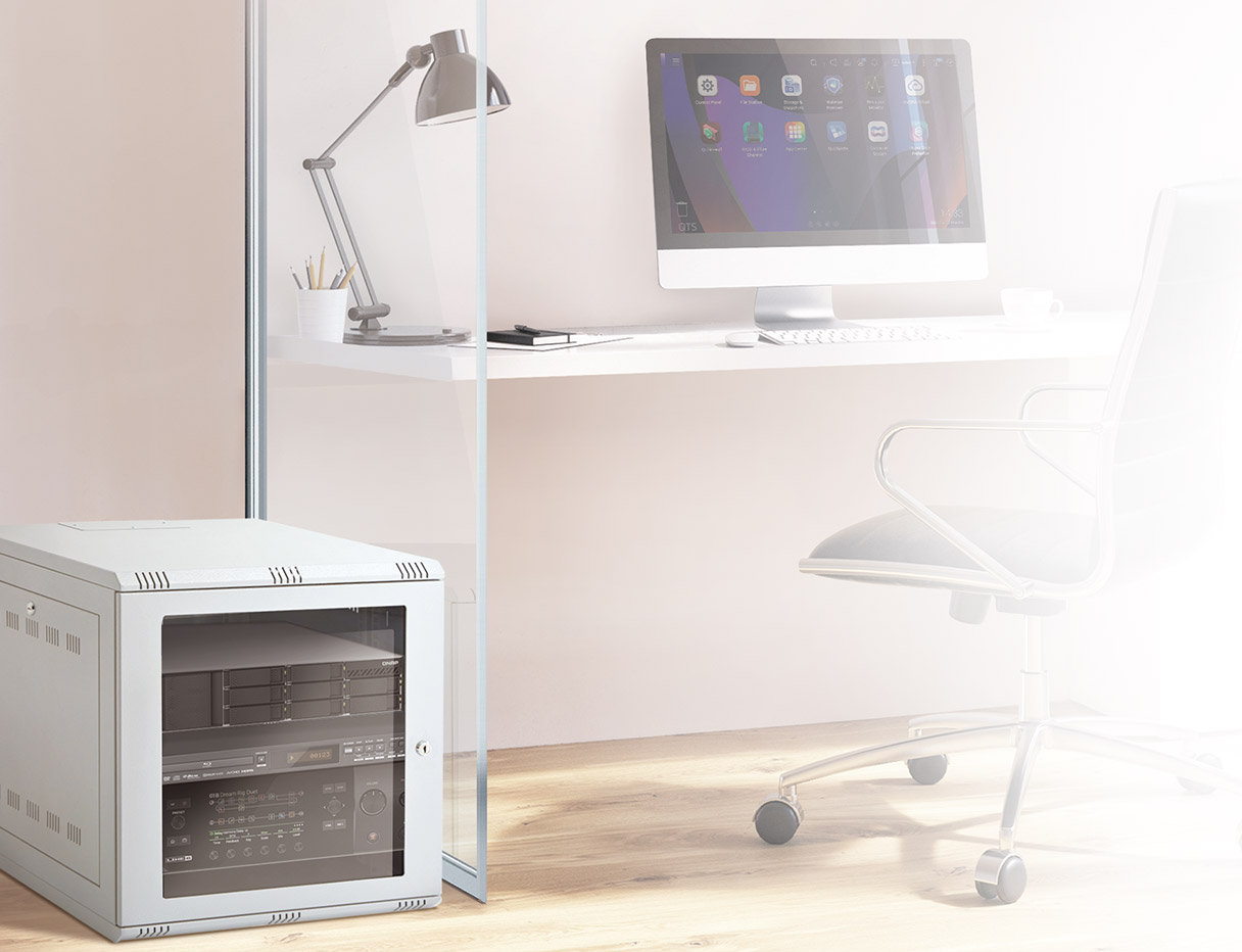 The rackmount TS-855eU-RP has a short depth design of only 11.7 inches (297.4 mm), making it an excellent choice for smaller racks, wall-mount AV rack cabinets, and network rack cabinets. The space saved by the short depth design can be reserved for cabling or ventilation. The TS-855eU-RP is space-saving for flexible deployment and is especially suitable for compact offices, audiovisual rooms, and security surveillance recording.