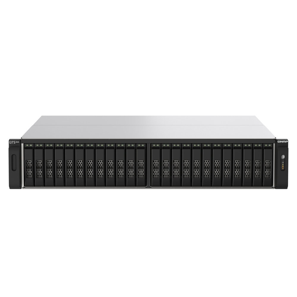The NVMe all-flash TS-h2490FU is designed for providing extreme performance with high cost-efficiency. Featuring 24 U.2 NVMe Gen 3 x4 SSD bays, the TS-h2490FU delivers up to 661K / 245K random read/write IOPS with ultra-low latency. The ZFS-based QuTS hero operating system supports inline data deduplication and compression for reducing I/O and SSD storage consumption, which significantly extends SSD lifespan with a higher price-performance ratio for all-flash storage arrays. Coupled with near-unlimited snapshots, real-time SnapSync, and petabyte-scale storage expansion capabilities, the TS-h2490FU is ideal for I/O-intensive and latency-sensitive applications, and eliminates productivity bottlenecks in modern data centers, virtualization, and mission-critical backup/restore tasks.