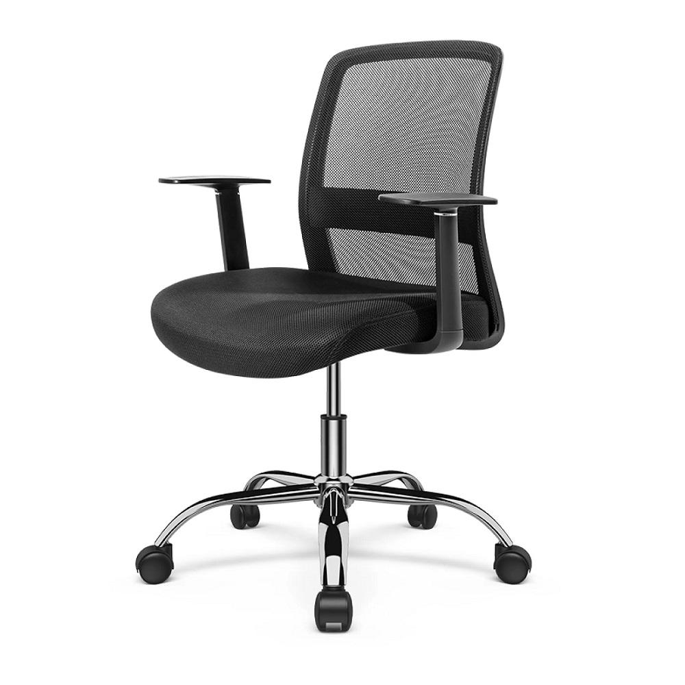 Работен стол Deli PORTO, мрежа и дамаска, метална база, фиксирани подлакътници, черен