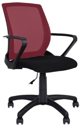 Работен стол Fly Black, мрежа и дамаска, черна PP база, без подлакътници, черен/червен