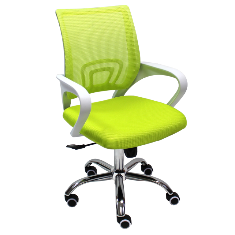 Lori – свежест и комфорт, които работят за теб!Потопете се в ново измерение на удобството с работния стол Lori White Chrome от Furnit – вашият верен партньор във всеки офис ден! Съчетанието от лайм зелена мрежеста облегалка и модерна хромирана пет-лъчева база създава усещане за лекота и стил, които вдъхновяват продуктивност и настроение. Фиксираните бели подлакътници се вписват елегантно в дизайна, като осигуряват стабилна опора за ръцете, докато фиксираната лумбална опора поддържа естествената извивка на гърба ви през целия ден. Надеждната метална конструкция и максималното тегло от 110 кг гарантират устойчивост и дълготрайност, а 24-месечната гаранция ви дава допълнително спокойствие. Меката дамаска на седалката и дишащата облегалка правят този стол идеален избор за динамична работна среда. Изберете Lori и внесете свежест, комфорт и увереност във всеки работен миг!