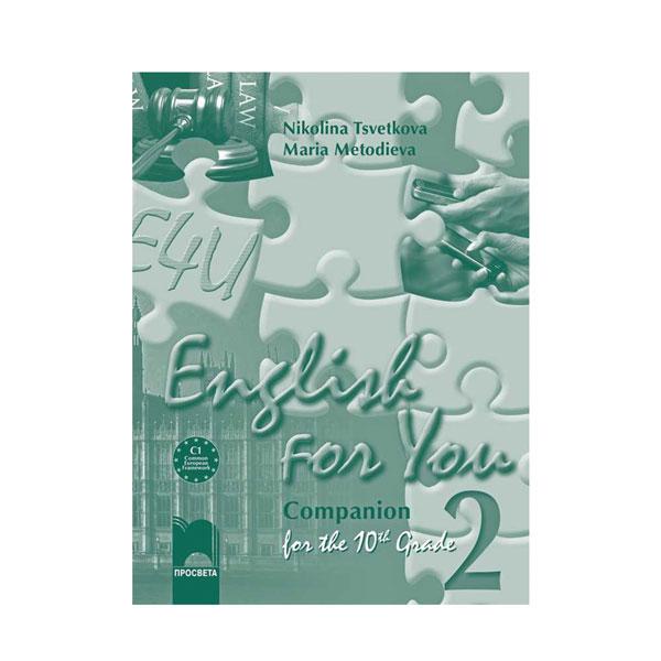 English for You Companion 2 упражнява, разширява и надгражда учебния материал, заложен във втората част на учебната система English for You за 10. клас. Съдържа пет модула, секция Plus Hands-on Grammar and Vocabulary с допълнителни упражнения за всеки модул, един преговорен урок, портфолио, теми за проектна работа, текстове за извънкласно четене и текстове на избрани аудиозаписи към тетрадката. Учениците могат да направят обобщена самооценка на знанията си в секциите My Portfolio и My Personal Compass. В преговорния урок са включени рубриките Exam Corner: English in Use и Writing Corner, в които чрез сертификатни типове задачи като multiple choice cloze, open cloze, word formation, key word transformation, и writing task се обобщават основните знания и умения, усвоени в петте модула. За развиване на умението четене са включени оригинални четива по изучаваните теми в секцията Join Our Reading Club. Секцията Listening Support включва част от текстовете за слушане към Zoom in on Listening и дава възможност за допълнителна езикова работа.