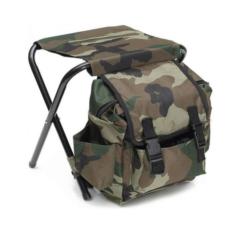 2 в 1 Раница и Къмпинг стол е идеален атрибут за риболов, плаж, градина, къмпинг или излет. Столът е удобен и стабилен. Има солидни и издръжливи тръби. Столът е оборудван с прикачена раница под седалката за напитки, храна или други принадлежности. Когато столът се сгъне, може да се носи като раница, която има две презрамки. Раницата има едно голямо отделение, два странични джоба за напитки и още един по-малък джоб в средата за дребни вещи.