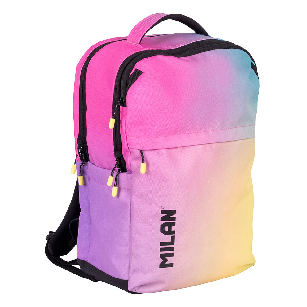 Внесете енергия, стил и готовност за всяко предизвикателство в учебния ден с раница от колекцията Sunset на Milan! Със своя уникален преливащ се дизайн в розово и жълто, тя носи усещане за енергия и позитивизъм.