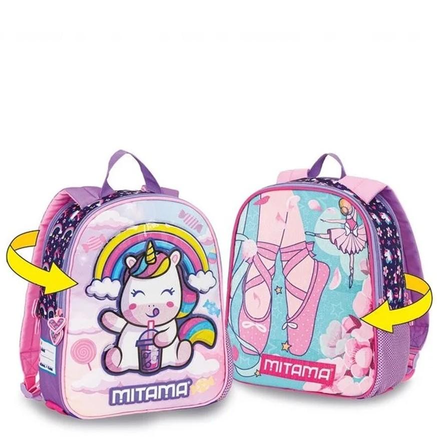 Два свята на еднороговa магия – избери своя танц всеки ден с MITAMA Spinny UniDance!Посрещнете всяка сутрин с усмивка и фантазия с раницата за детска градина MITAMA Spinny UniDance – създадена специално за най-малките мечтателки! Тази уникална раница е с две лица и две отделения, за да може вашето дете да избира любимата си визия според настроението си. Създадена от висококачествен полиестер, тя е издръжлива и лека, което я прави идеална за ежедневните приключения в детската градина. С обем от 8.5 литра, тя побира всички важни съкровища, а удобните презрамки осигуряват комфорт при носене. Красивият еднорог и танцуващата тематика вдъхновяват въображението и радват окото, превръщайки всяко тръгване на детска градина в истински празник. Нека вашето момиче усеща магията всеки ден и изразява своята индивидуалност с MITAMA Spinny UniDance – раницата, която носи вдъхновение във всяка стъпка!