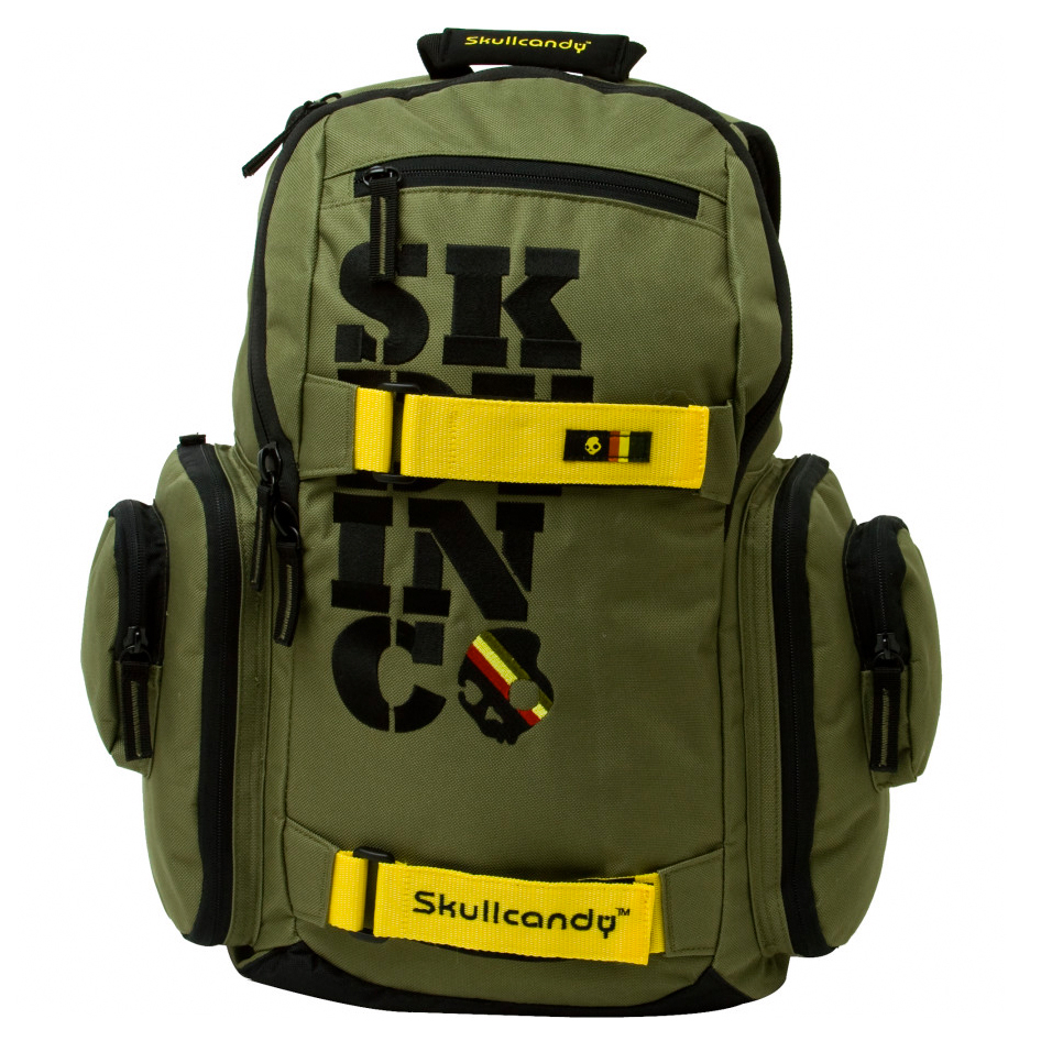 С логото на Skullcandy на предната и задната част на раницата