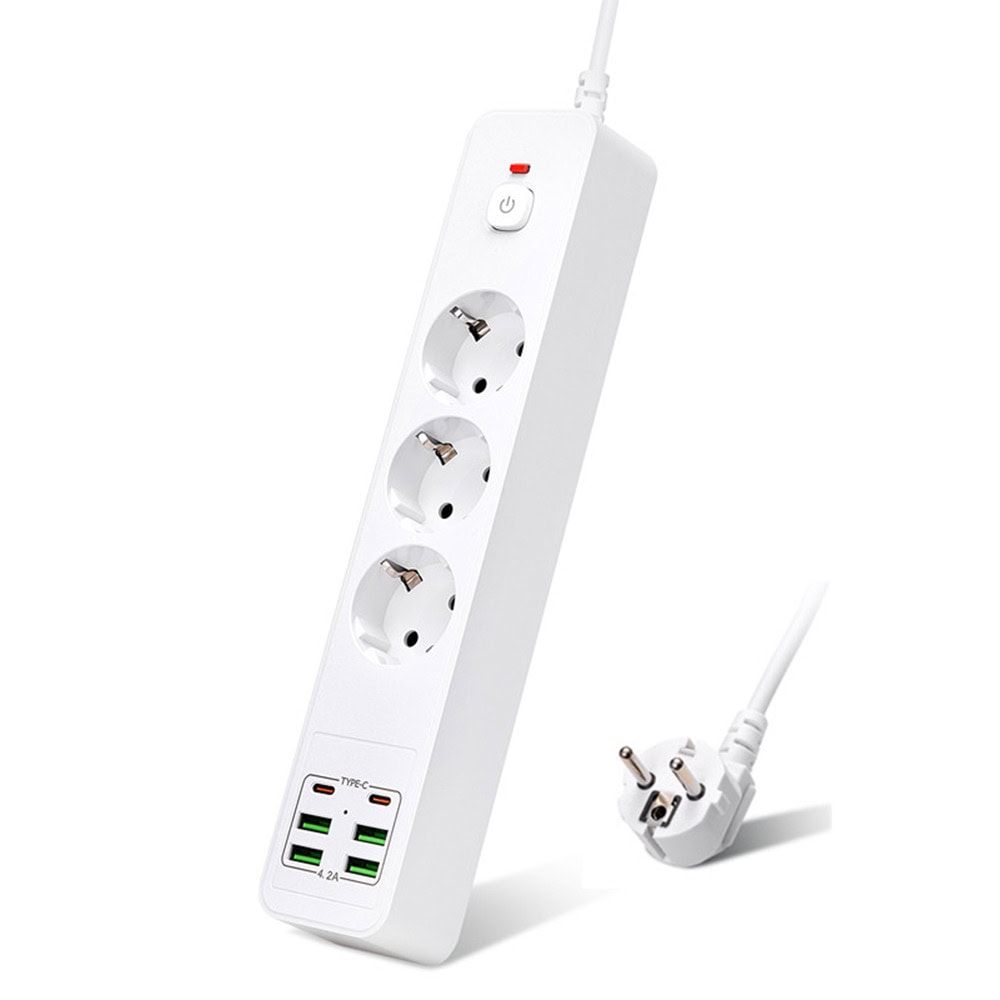 Разклонител 17888, 4 гнезда, 4x USB-A, бутон за вкл./изкл., 3m кабел, бял19.23 €