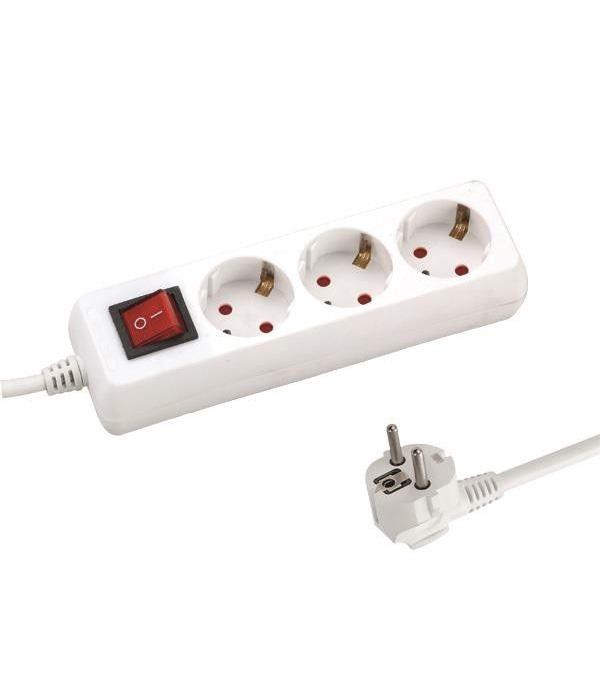 Разклонител Eurolamp, 3 гнезда с ключ, защита за деца, 1.5 м, бял