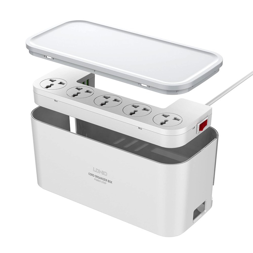 Разклонител с 5 изхода и вградени и 3хUSB-A изхода за мобилни устройства (бял) - LDNIO SN5309 Power Strip With Organizer 2500W