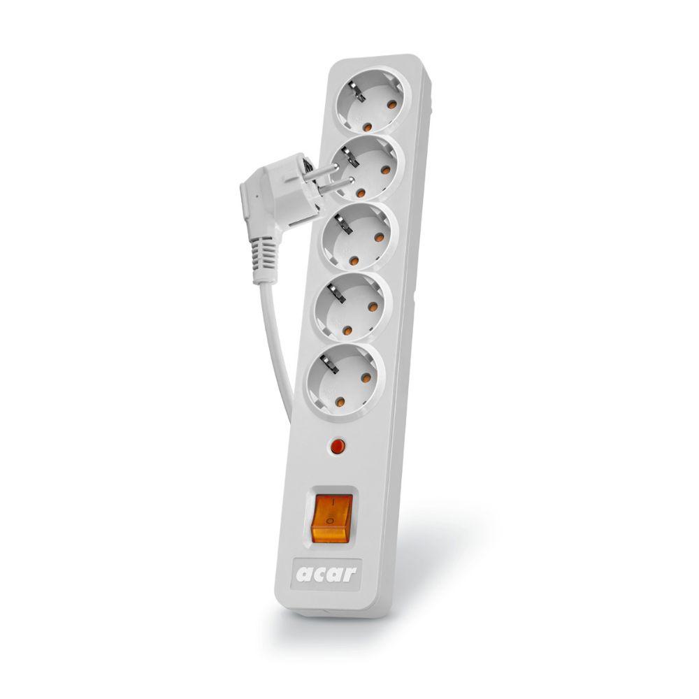 • 5 гнезда тип Шуко, разположени под ъгъл от 45° за по-удобно използване с ъглови щепсели