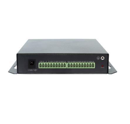8-изхода RS485 разширител за панел ARC9016C-G. 8x Релейни изхода DC24V/1A. Захранване: DC12/2W. Размери: 136x132x30mm. Работна темп.: -10~55℃.