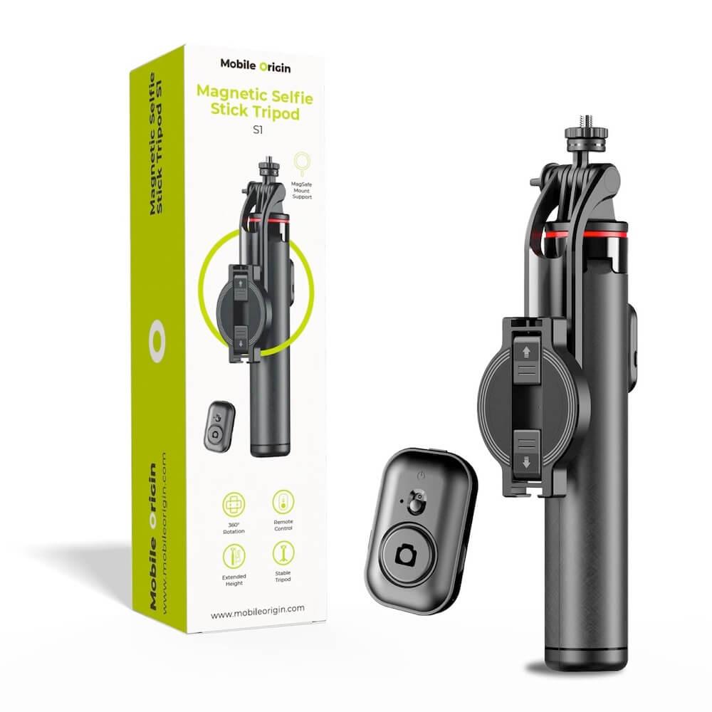 Разтегаем безжичен селфи стик с MagSafe и трипод за мобилни телефони - Mobile Origin S1 Magnetic Wireless Selfie Stick Tripod (черен)