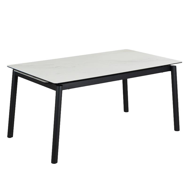Трапезната маса WARTA е съвременно и стилно предложение за Вашия интериор, съчетаващо изчистен дизайн и висококачествени материали. Плотът е изпълнен в бял цвят с обща дебелина от 12 мм, съставен от комбинация между керамика и закалено стъкло за по-голяма устойчивост и луксозно излъчване. Масата е оборудвана с практична функция за разтягане, която позволява лесно адаптиране към броя на Вашите гости. Стабилността на модела е гарантирана от модерна геометрична основа, изработена от прахово боядисан метал. Пълна информация за характеристиките на модела ще намерите в таб/поле „Техническа информация“.