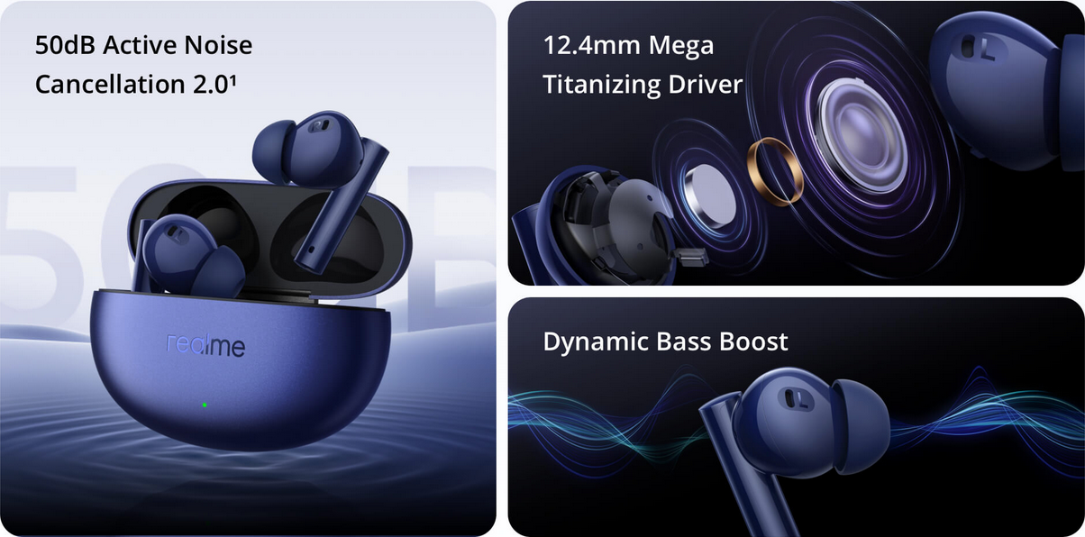 Playback (50% volume, AAC, Noise Reduction/Transparency Mode): Earbuds Only: 4.5H ; Earbuds + Case: 22H