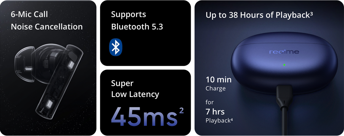 Theoretical Talk Time (50% volume) - Noise Reduction/Transparency Mode - 3.8H ; Normal Mode - 4H
