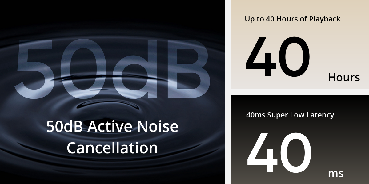 In Game Mode, the earbuds can reach an industry breakthrough 40ms ultra-low latency, bringing ultra-high audio and video synchronization, letting you get deeper into the action during those intense battles.