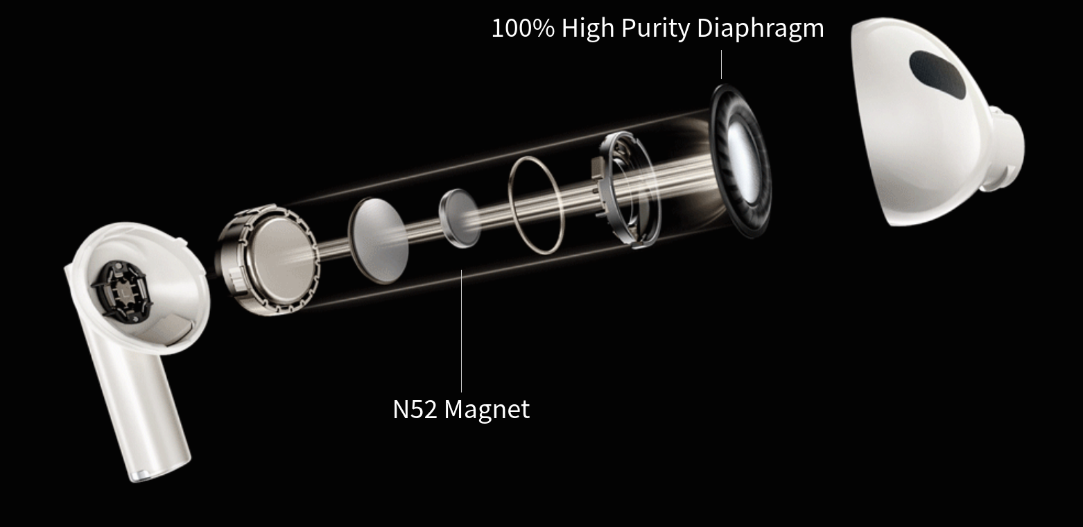 The 11mm bass driver features a 100% high purity diaphragm with ultra-high resilience and high transient response, giving an effective 30% boost in low frequencies, plus an N52 magnet powerfully driving the diaphragm for an ultra-high sensitivity that brings a 50% boost in driving power, for powerful bass that rocks.
