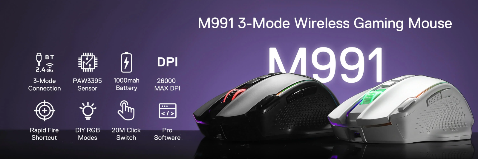 Cables truly will affect your detailed battle reaction, M991 geared with BT and 2.4Ghz nano receiver offers you the purest and preciser mouse moving experience and hype your KDA rise again.