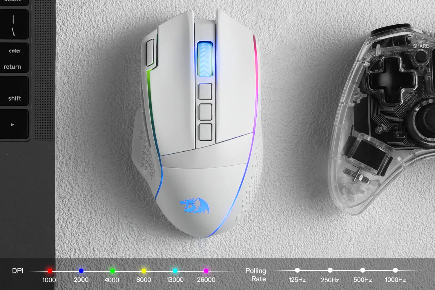 - 6 on-board DPI levels (1000/2000/4000/8000/13000/26000)