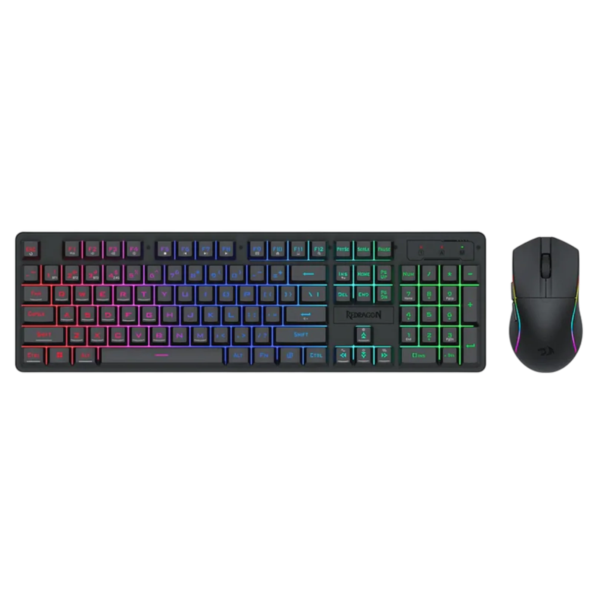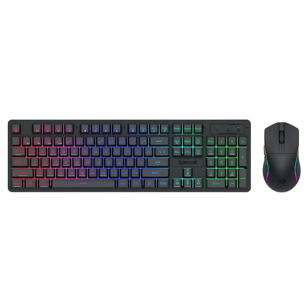 Комплектът Redragon S107-KS е гейминг комплект от клавиатура и мишка с RGB подсветка, който поддържа три режима на свързване (жично, 2.4 GHz безжично и Bluetooth)** за стабилна и гъвкава работа с PC или лаптоп. Комплектът е проектиран за геймъри и продуктивна работа, като предлага персонализируеми настройки за подсветка, DPI и мултимедийни клавиши за по-ефективно управление.