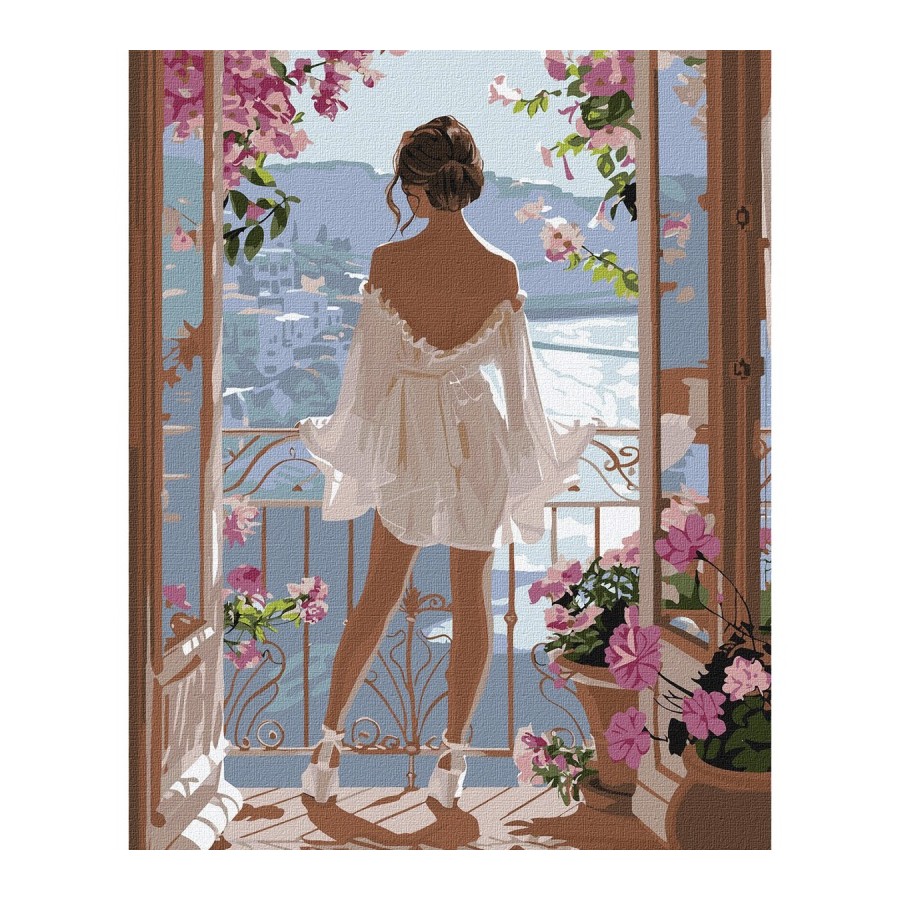 Рисуване по номера IDEYKA, с подрамка, INCREDIBLE LANDSCAPE/Жена на балкон, 40х50 см