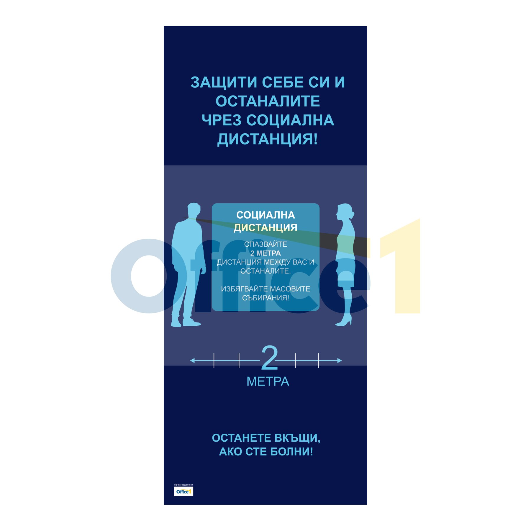 Рол банер стойка с винил, Социална дистанция, 85 х 200 cm