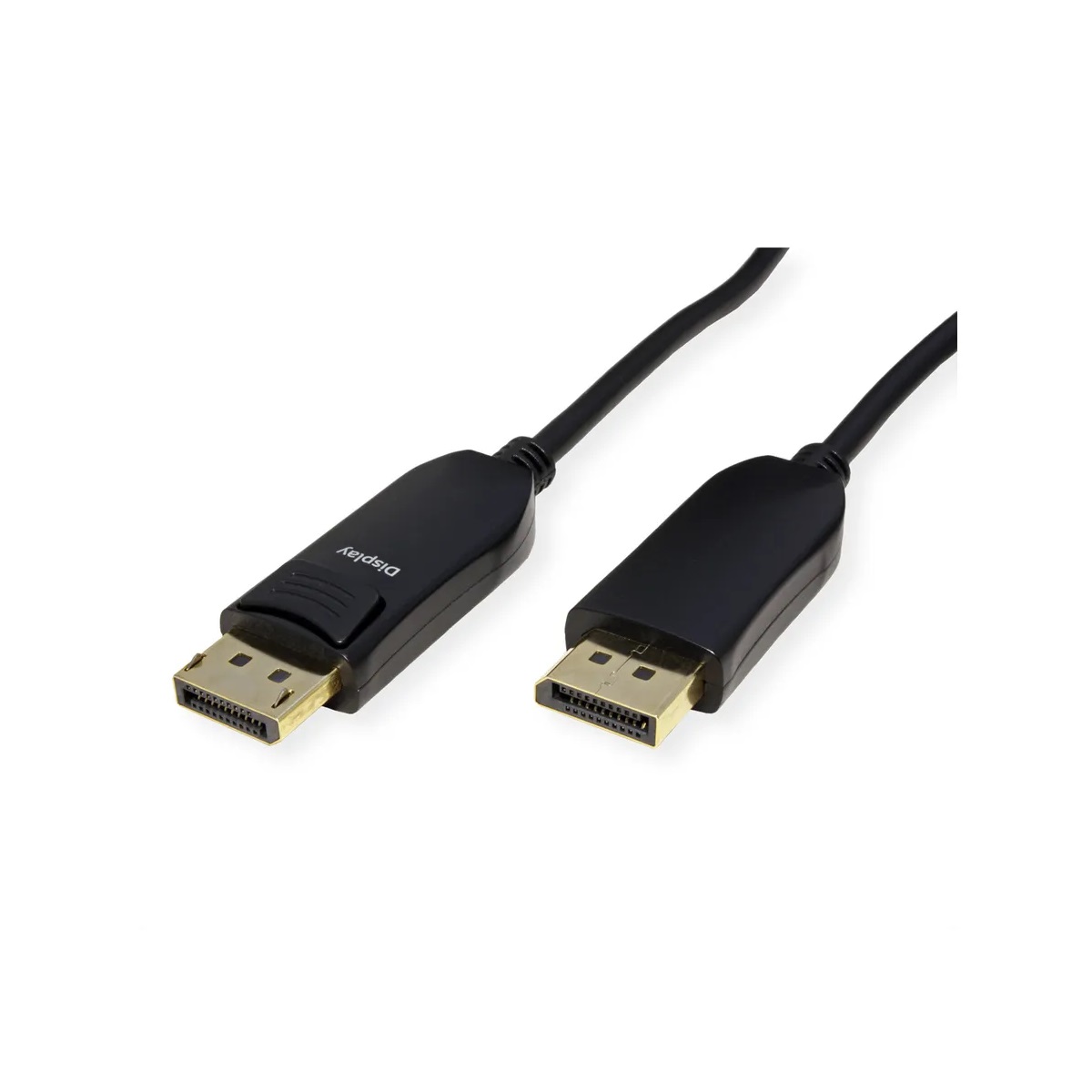 - ROLINE DisplayPort Акртивен оптичен кабел(AOC) с DP конектор от двете страни за свързване на ултрабук, лаптоп/компютър или компютър към монитор, телевизор или проектор - за предаване на картина с отлично качество и резолюция до 10240x4320 @60Hz!