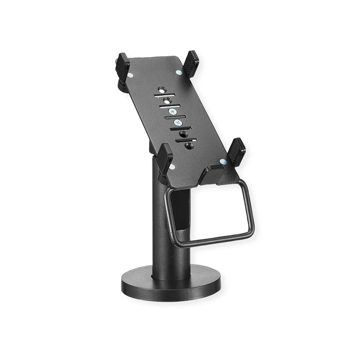 - Перфектна стойка за сигурно закрепване на терминала за кредитни карти върху плот с винтова основа.