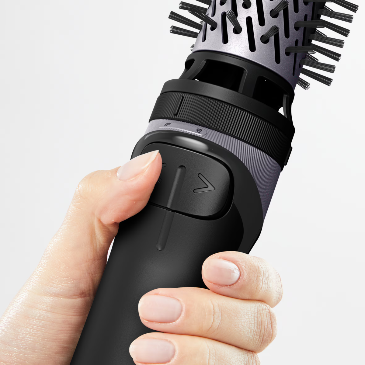 Изсушаване с допълнителен обем Високоефективната въртяща се четка за горещ въздух възпроизвежда професионални техники за оформяне на косата с допълнителен обем. | ![]() |