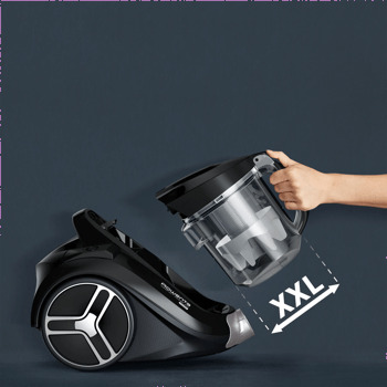 Изключителна мощност за дълбоко почистване Открийте най-мощната XXL прахосмукачка без торбичка от Rowenta* с компактен формат, усъвършенствана циклонна технология и мотор с ниско потребление от макс. 900 W** за перфектни резултати при почистване. | ![]() |