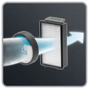 Най-добри резултати при ре-емисии на прах. Compact Power™ Cyclonic е снабдена със съвременна моноциклонна система, като постига високо ниво на разделяне на въздух и прах. Освен това, продуктът предлага 2 нива на филтрация: дунапренен филтър, поставен пред мотора и специален високоефективен филтър точно преди изхода на въздуха, за улавяне на най-малките частици прах, изпускани от мотора. 99.98% филтрация | ![]() |