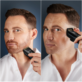 Висока прецизност Два регулируеми гребена, предлагащи 29 дължини на рязане (от 0,5 до 30 мм) с прецизно регулиране от 1 мм за лесно персонализиране на точния ви стил, и четка за оформяне на брада. | ![]() |