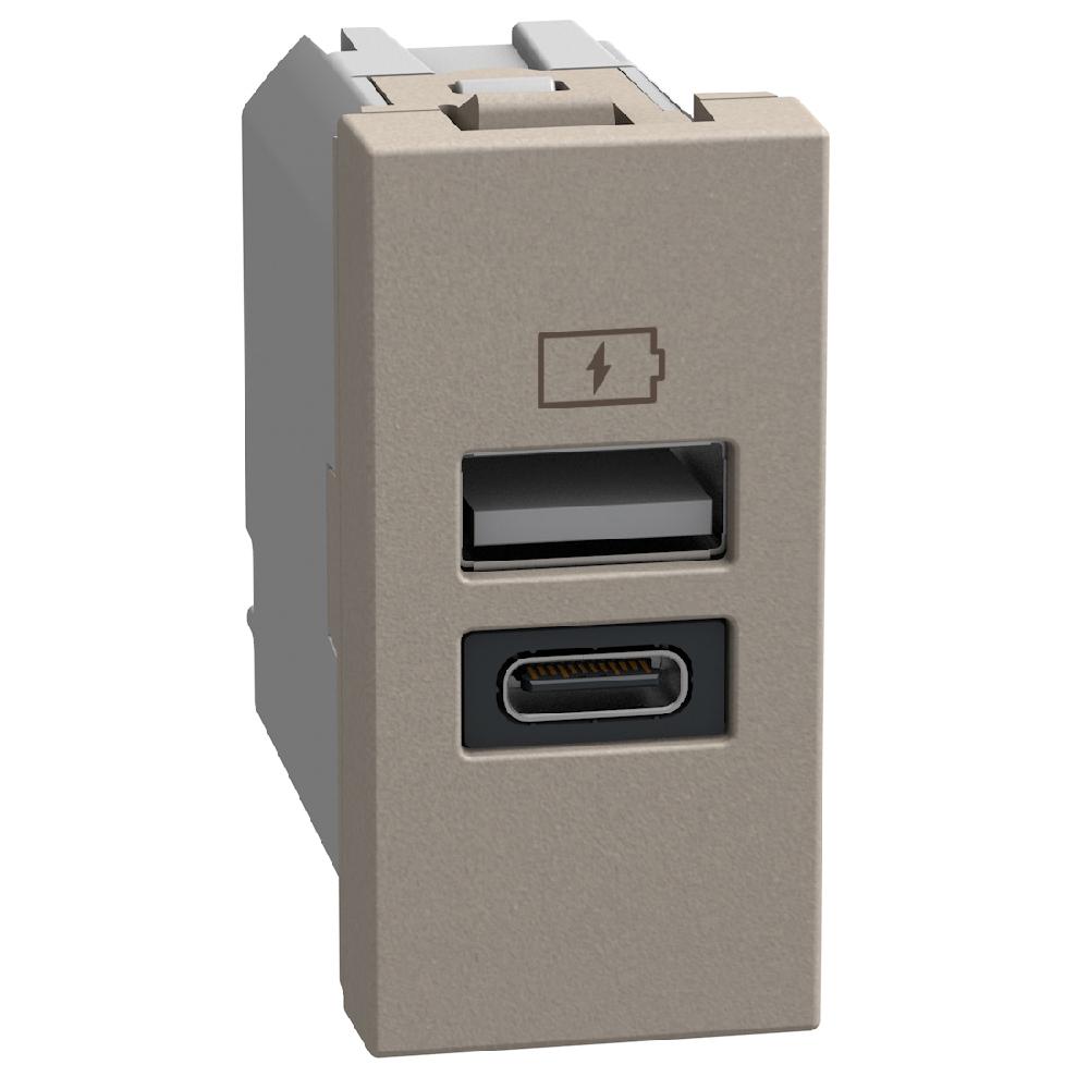 Розетка 2x USB тип A+C 15W 5V 1M Камък - bticino Light Now YG4191AC