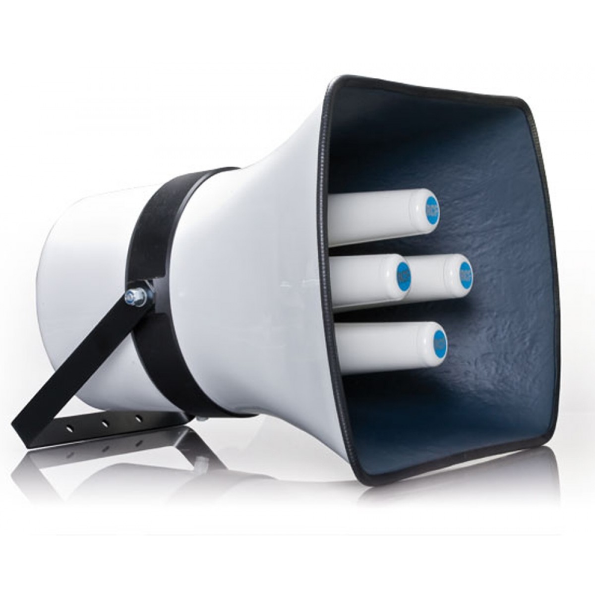 Рупорен говорител за външен/вътрешен монтаж. 100V/70V линия. Мощност 4х50W, 200W RMS, чувствителност 110dB, честотен диапазон 150Hz-12kHz. Ъгъгл на покритие H60º x V50º. Максимално звуково налягане: 133dB(20W, 1m). Импеданс 16Ω/100V/50W. Размери: 475x560x620mm,тегло: 21.4kg. Керамичен конектор, корпус от фибростъкло. Степен на защита IP65, работна температура: -25~70ºC. EN сертификат: EN 54-24:2008.