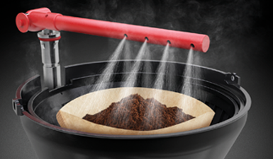 Advanced Showerhead Technology Featuring advanced showerhead technology that sprays water through the ground coffee, more evenly and quickly. This improved water distribution results in more of the coffee being dissolved and better extraction of flavour. | ![]() |