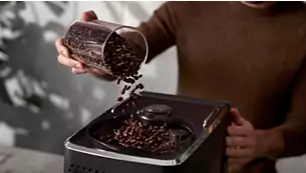 Големият контейнер за кафени зърна запазва свежестта на кафените зърна Големият контейнер за кафени зърна може да съхранява до 300 г пресни зърна и е снабден със специално уплътнение AromaSeal за дълготрайна свежест на кафените зърна. | ![]() |