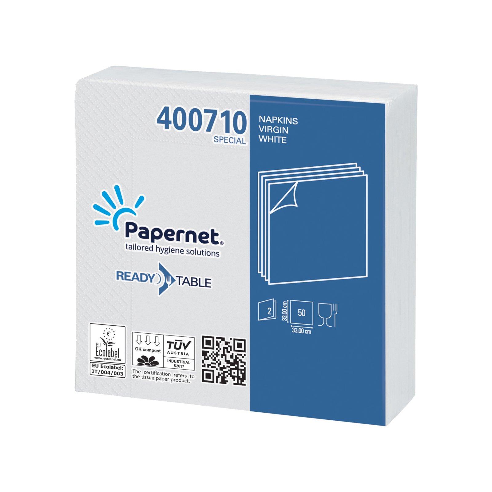 Салфетки Papernet, целулоза, двупластови, бели, 33 x 33 cm, 50 броя