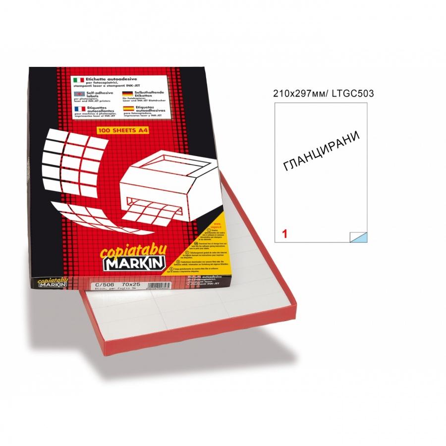 Самозалепващи етикети MARKIN Laser/Copier, полиестерни, прозр.гланц, А4, 210х297мм, 1бр./л., 50 л.