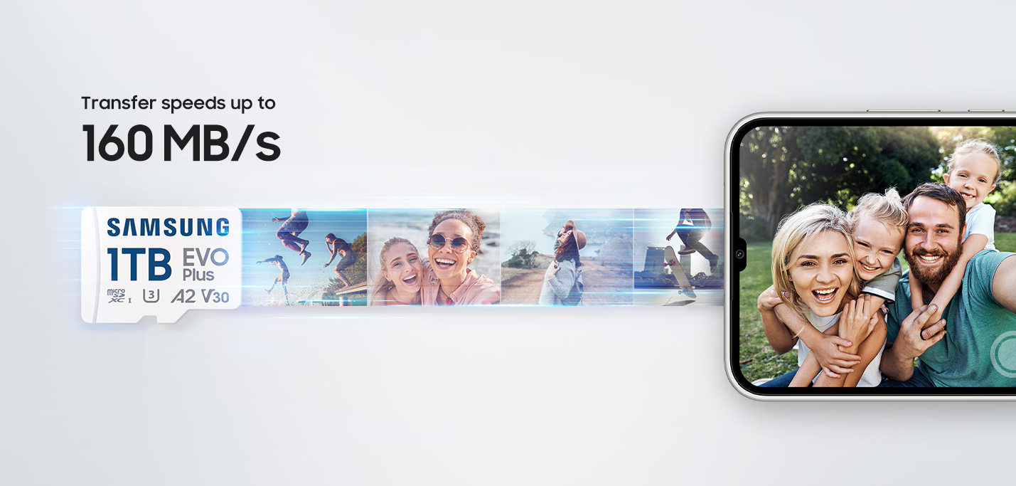 1TB за съхранение на повече забавления. Подобрената скорост и съвместимост осигуряват надеждна производителност. Огромният капацитет ти позволява да съхраняваш тонове мултимедия на телефона си, да зареждаш ръчната си конзола с игри или да изтегляш повече приложения на таблета си. Първокласната скорост прави трансферите безпроблемни с доверена надеждност, всичко това в елегантен нов дизайн.