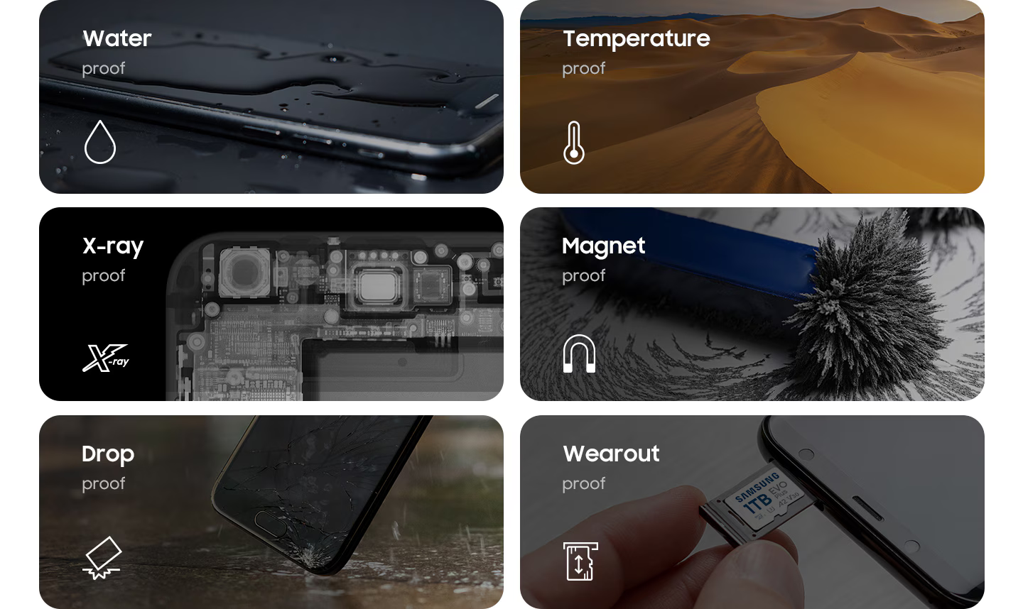 6-доказателство за спокойствие. EVO Plus издържа на предизвикателства като вода, температура, рентгенови лъчи, магнит, падане и защита срещу износване. Вашите незаменими преживявания заслужават надеждния избор.