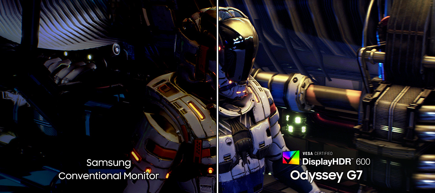 Разкрий цялата картина. DisplayHDR 600 осигурява по-висок контраст с по-дълбоки черни и по-ярки бели тонове, така че всеки детайл изпъква с кристална яснота – дори в най-тъмните сцени.