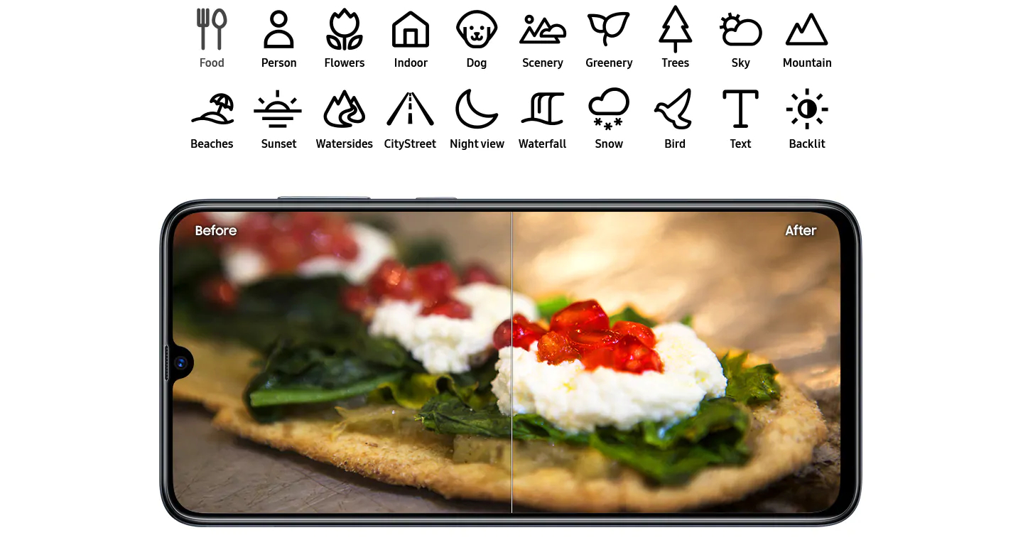 Една снимка е достатъчна. Независимо дали снимаш храна или домашния си любимец, или просто нещо, което харесваш, функцията за оптимизиране на сцените разпознава обекта и усъвършенства снимката с помощта на изкуствен интелект. Така получаваш най-доброто ниво на яркост, насищане и още повече, за да запечаташ момента точно както си го спомняш
